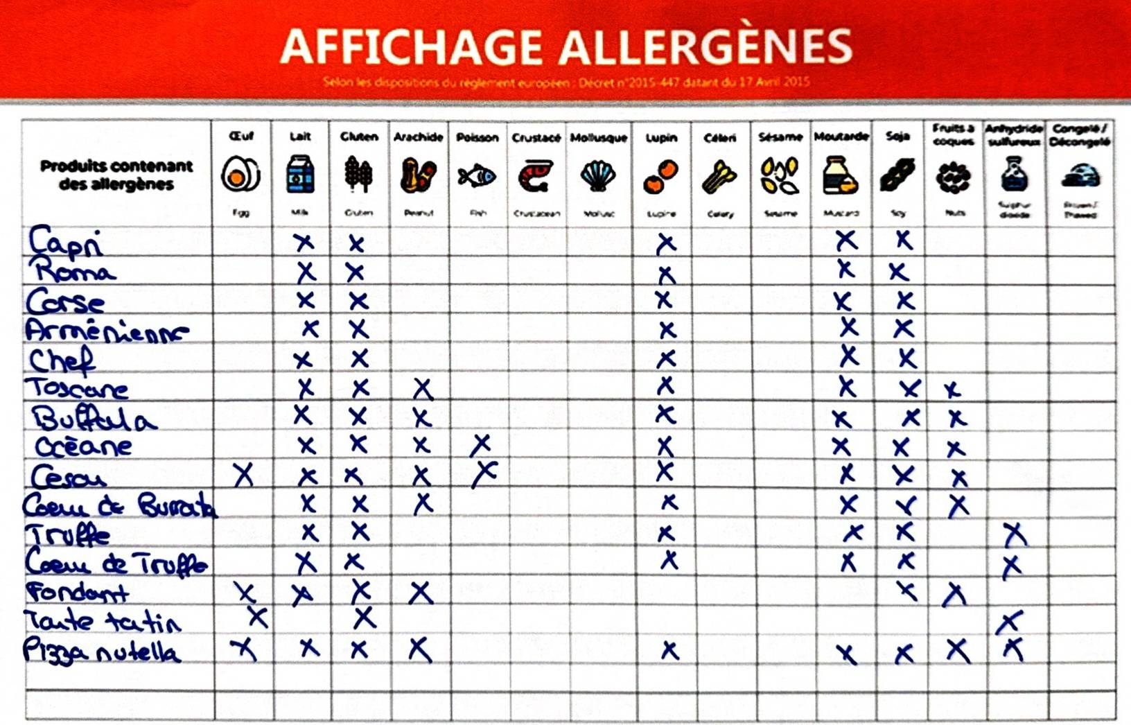 hors saumon, buffala, foie gras, jambon cru, truffe...(prix sup entre 2€ et 5€)